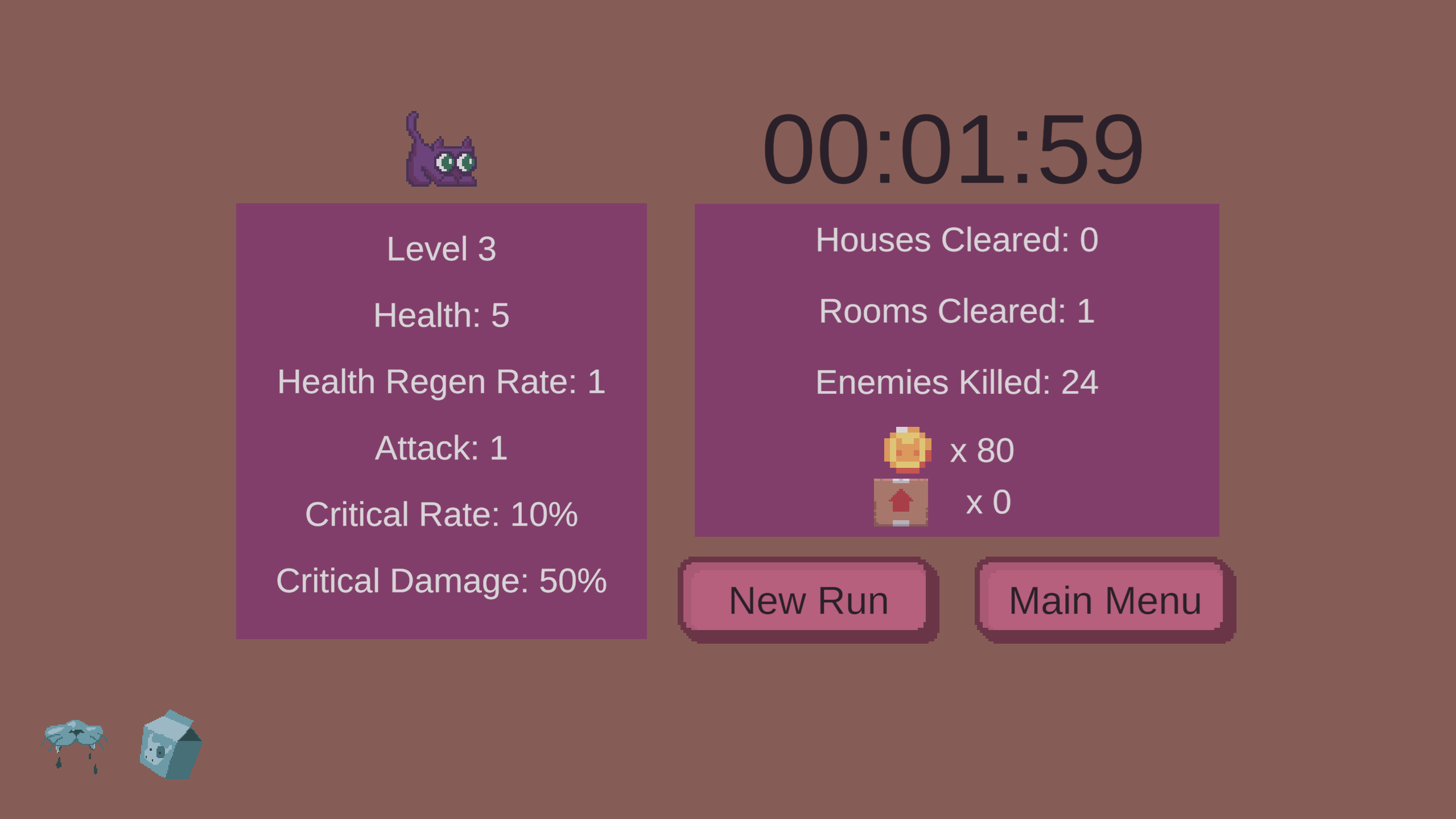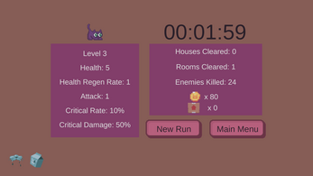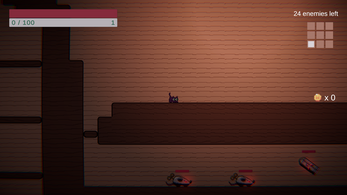 In this rogue-like 2D platformer, you play as a scaredy cat. Fight your way through the evil toys, clearing room by room until the entire house is cleared. The house is procedurally generated for endless fun! Level up and collect items. Spend your cat coins at landmarks across the rooms to get even stronger!